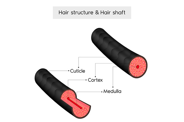 - 髄(メドゥラ): 中心部は、主に空気と脂肪でできています。毛髄は髪の内部の構造であり、髪の強度や柔軟性に影響を与えます。
