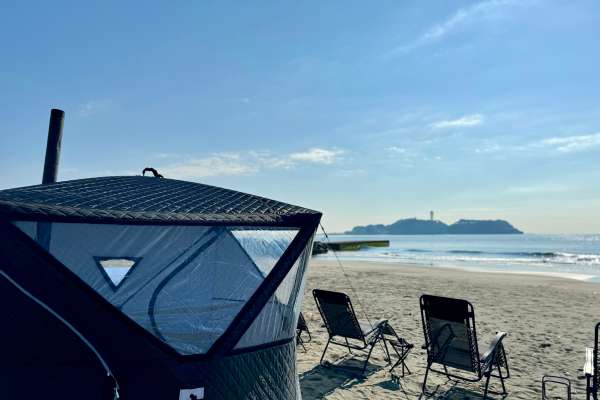 江ノ島のすぐ近く、鵠沼海岸で利用できるサウナサービスです。 「湘南の海で、最高の仲間と最高の思い出を。」をメッセージに、湘南の海、大空、富士山と自然に囲まれた場所でテントサウナを利用可能です。