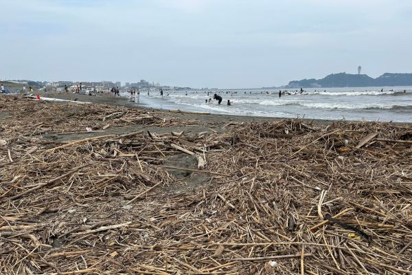 荒天の翌日は、鵠沼海岸は流木で溢れています。それらを拾い上げ、薪の代わりとして活用しています。簡単なビーチクリーンも兼ねています。