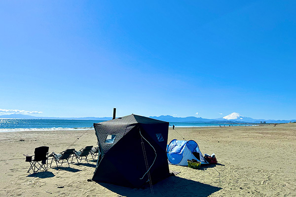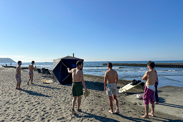 鵠沼海岸のハイシーズンとなる夏は、海の家など「湘南の夏」を味わいながらテントサウナを楽しめるシーズンとなります。